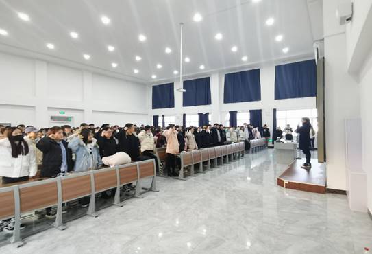 大会第四项:全体进行诚信宣言。在陆天皓同学的带领下,20级会计系全体同学,高举右拳,精神抖擞。瞬间,会场中响起了阵阵激昂的宣誓声,每个同学都在用发自内心的声音表达着他们对期末考试的信心,和一定会诚信考试的决心。